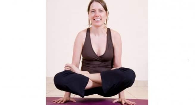 ৪) এবার শরীরকে সামান্য সামনের দিকে দোলাতে থাকুন। পা দুটি মাটি থেকে উপরে থাকবে।